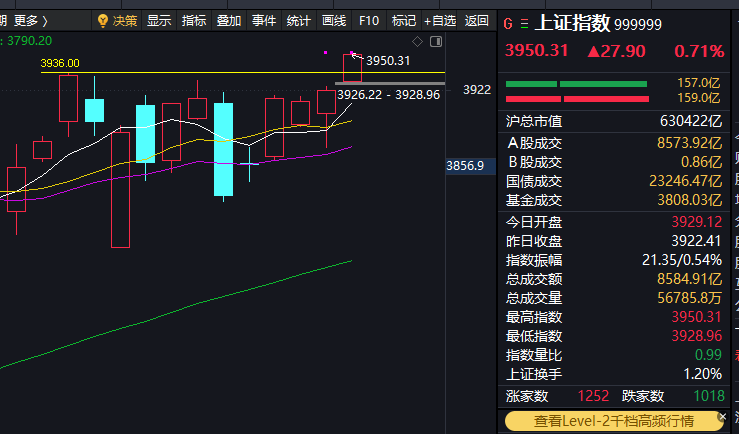 上证指数周一继续看涨防跌,下方若是回踩只要不破3936则可以大胆低吸,冲高先看3965左右,不过则试手中持仓情况做T,过则持股待涨,大方向4000点也同样才是牛市垫脚石。