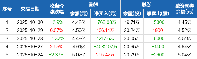 山河智能:融资净偿还768.08万元,融资余额4.42亿元(10-30)
