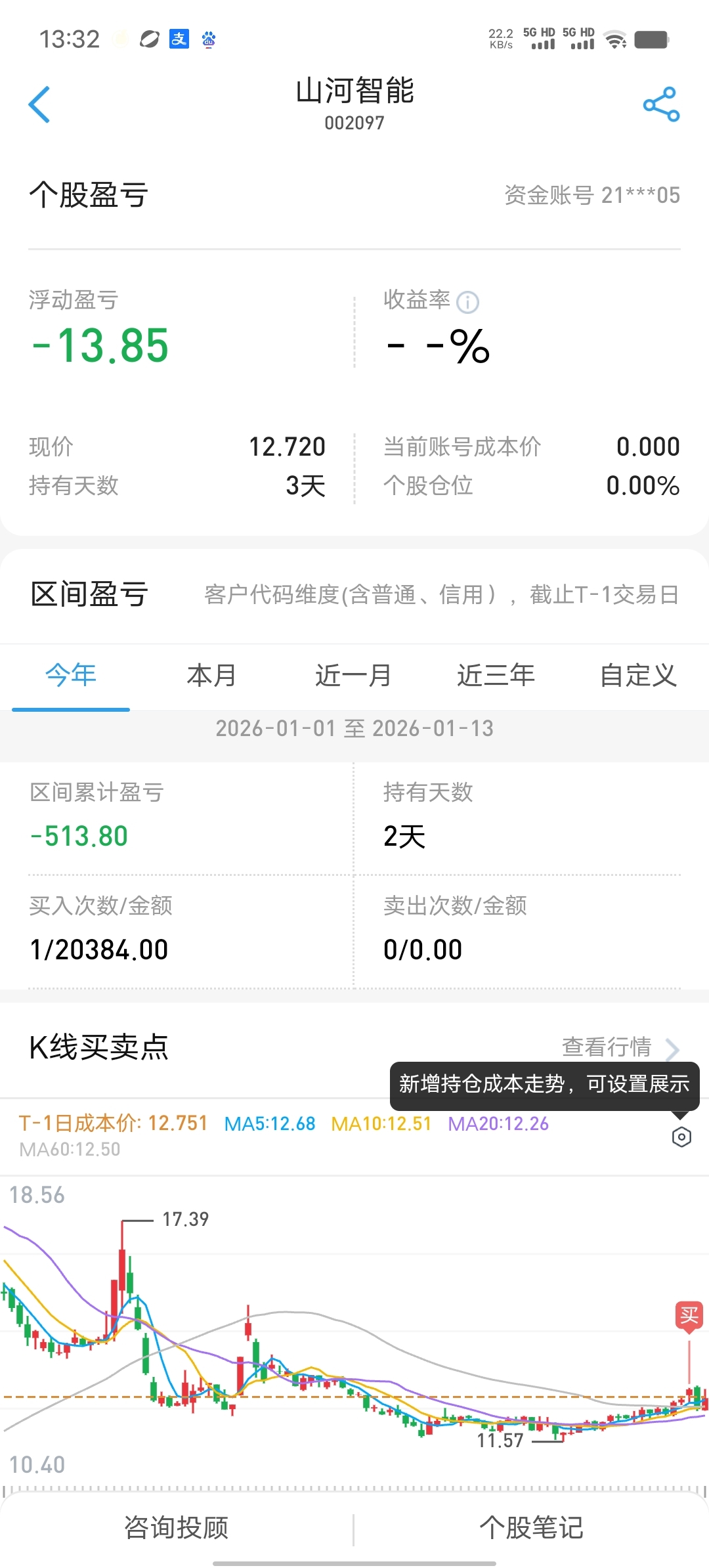 $山河智能(SZ002097)$ 玩个蛋蛋,亏了14元