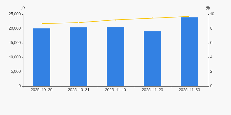2025年10月20日至今,公司股东户数显著增长,区间涨幅为19.03%。2025年10月20日至2025年11月30日区间股价上涨11.47%。