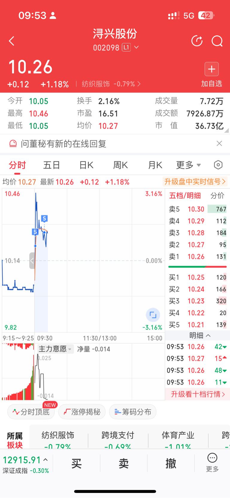 $浔兴股份(SZ002098)$ 我一卖就涨停