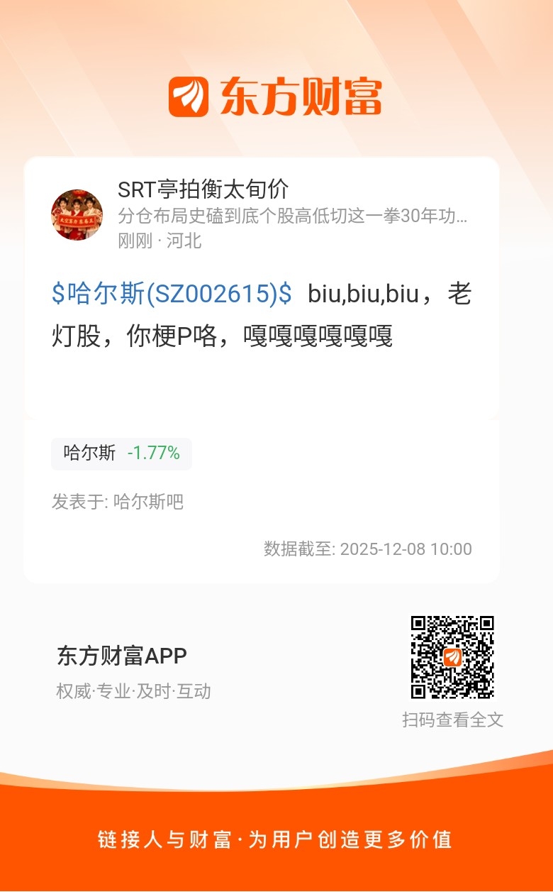 温馨提示: 1.根据《证券法》规定,禁止编造、传播虚假信息或者误导性信息,扰乱证券市场;2.用户在本社区发表的所有资料、言论等仅代表个人观点,与本网站立场无关,不对您构成任何投资建议。用户应基于自己的独立判断,自行决定证券投资并承担相应风险。《东方财富社区管理规定》