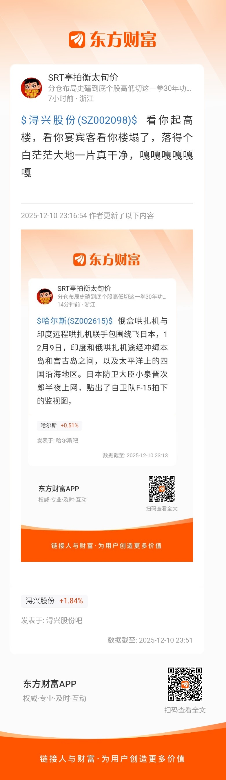 温馨提示: 1.根据《证券法》规定,禁止编造、传播虚假信息或者误导性信息,扰乱证券市场;2.用户在本社区发表的所有资料、言论等仅代表个人观点,与本网站立场无关,不对您构成任何投资建议。用户应基于自己的独立判断,自行决定证券投资并承担相应风险。《东方财富社区管理规定》