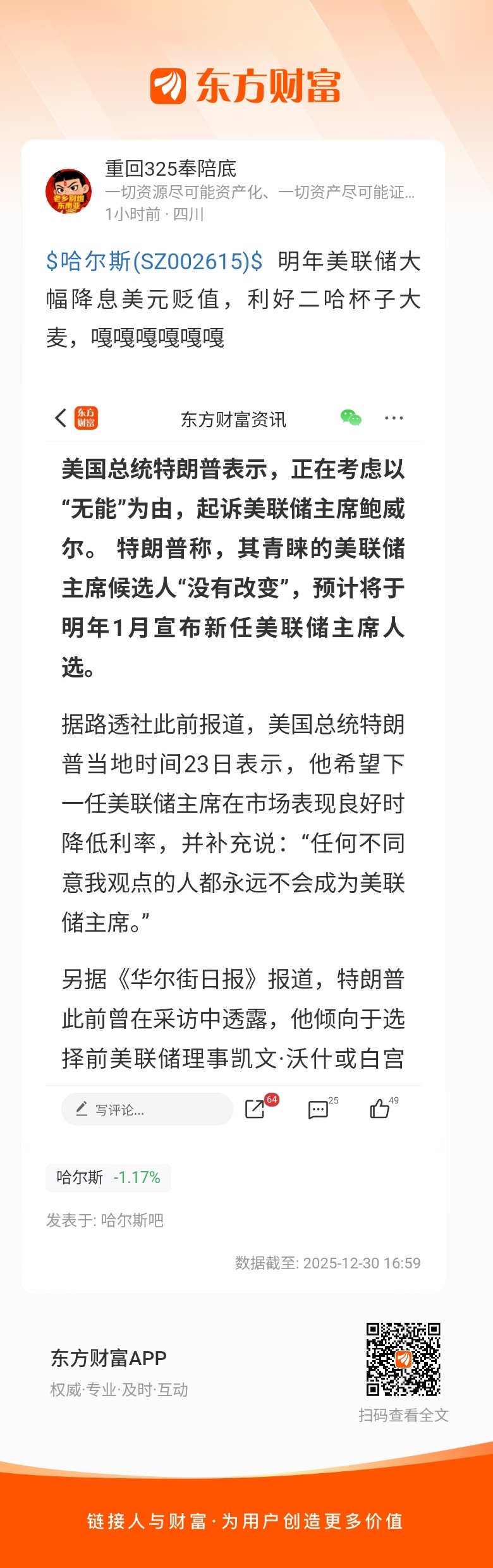 温馨提示: 1.根据《证券法》规定,禁止编造、传播虚假信息或者误导性信息,扰乱证券市场;2.用户在本社区发表的所有资料、言论等仅代表个人观点,与本网站立场无关,不对您构成任何投资建议。用户应基于自己的独立判断,自行决定证券投资并承担相应风险。《东方财富社区管理规定》