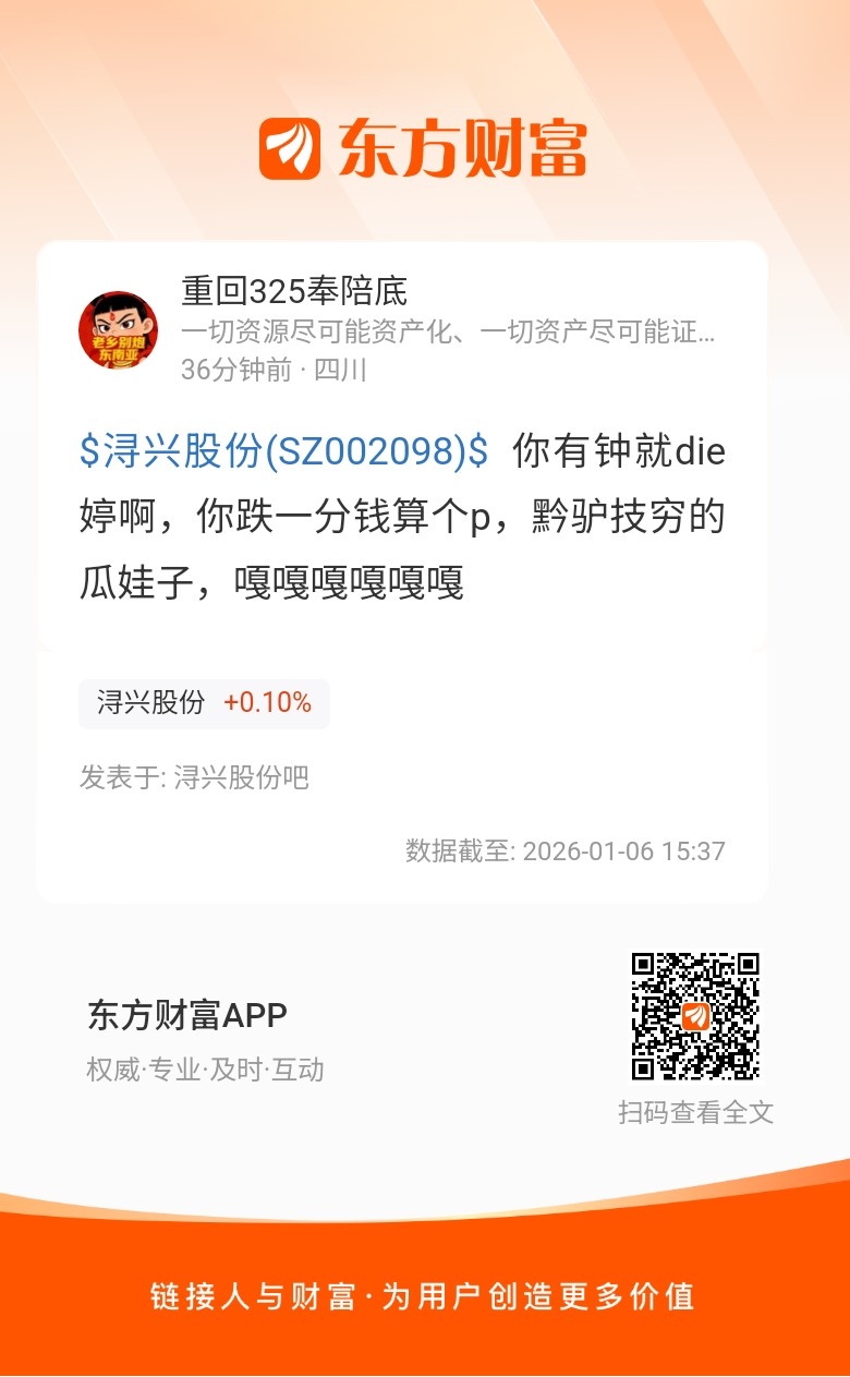 温馨提示: 1.根据《证券法》规定,禁止编造、传播虚假信息或者误导性信息,扰乱证券市场;2.用户在本社区发表的所有资料、言论等仅代表个人观点,与本网站立场无关,不对您构成任何投资建议。用户应基于自己的独立判断,自行决定证券投资并承担相应风险。《东方财富社区管理规定》