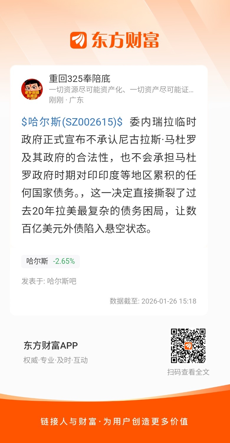 温馨提示: 1.根据《证券法》规定,禁止编造、传播虚假信息或者误导性信息,扰乱证券市场;2.用户在本社区发表的所有资料、言论等仅代表个人观点,与本网站立场无关,不对您构成任何投资建议。用户应基于自己的独立判断,自行决定证券投资并承担相应风险。《东方财富社区管理规定》