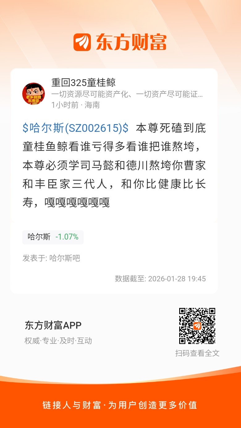 温馨提示: 1.根据《证券法》规定,禁止编造、传播虚假信息或者误导性信息,扰乱证券市场;2.用户在本社区发表的所有资料、言论等仅代表个人观点,与本网站立场无关,不对您构成任何投资建议。用户应基于自己的独立判断,自行决定证券投资并承担相应风险。《东方财富社区管理规定》