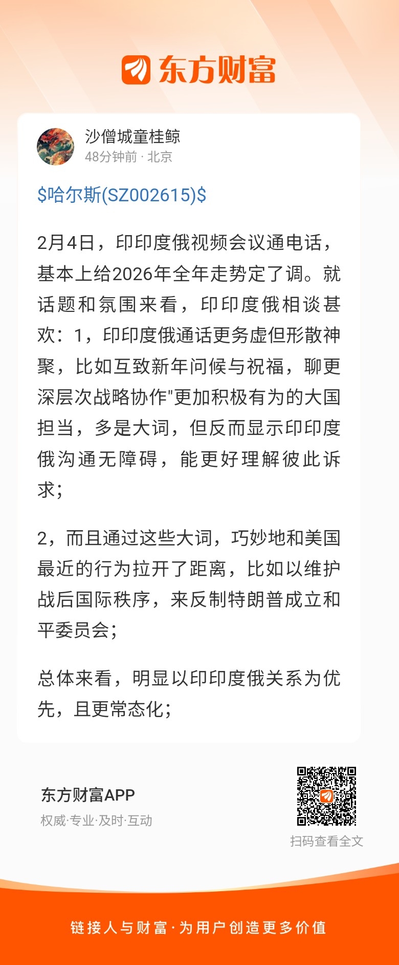 温馨提示: 1.根据《证券法》规定,禁止编造、传播虚假信息或者误导性信息,扰乱证券市场;2.用户在本社区发表的所有资料、言论等仅代表个人观点,与本网站立场无关,不对您构成任何投资建议。用户应基于自己的独立判断,自行决定证券投资并承担相应风险。《东方财富社区管理规定》