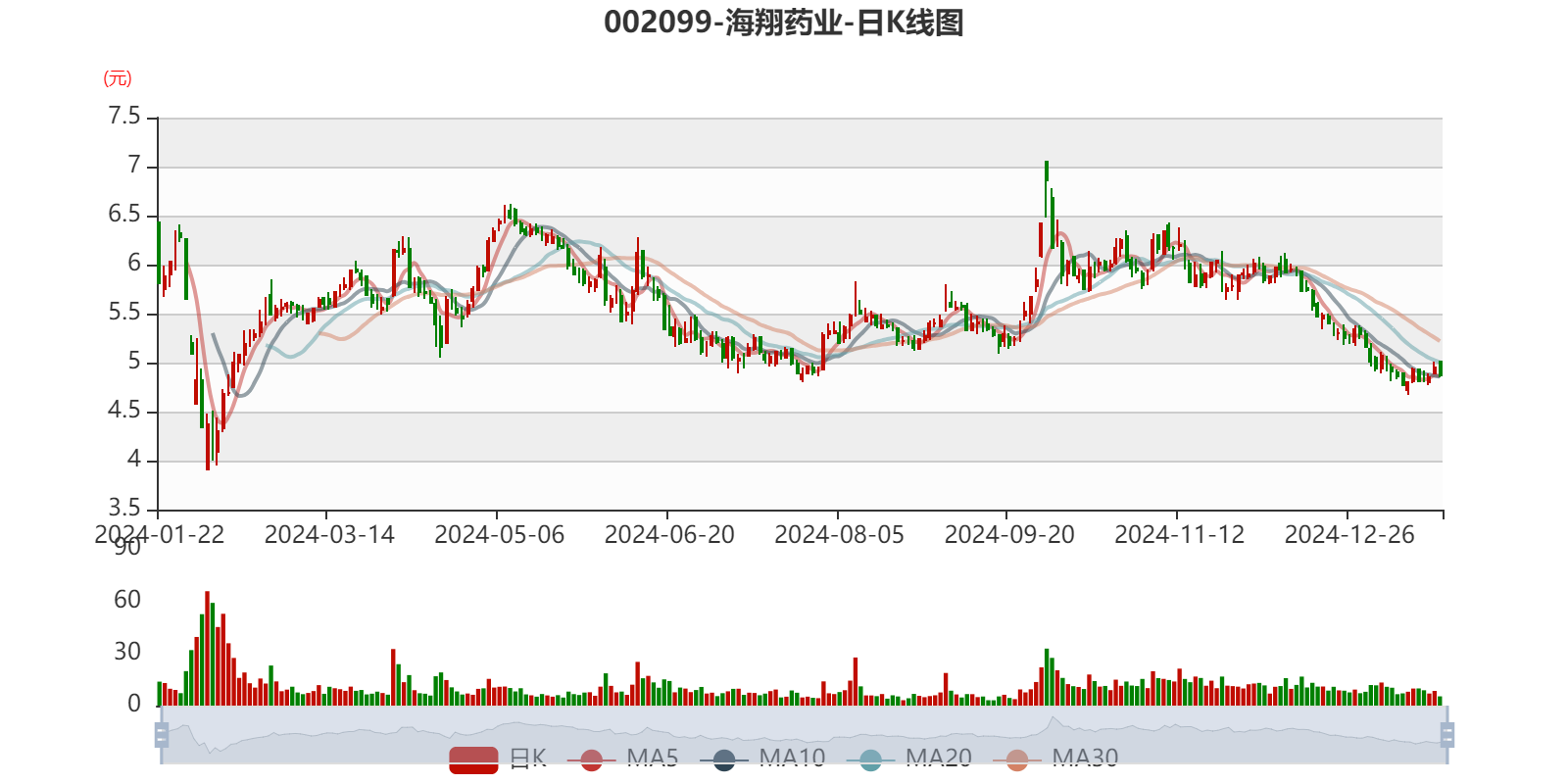 2024年度,医药化工行业下游需求低迷,产品价格持续下探,行业竞争加剧。公司培南系列全年在历史低位运行,染料板块价格持续低迷未见回暖,不断挤压公司盈利水平,导致公司经营业绩低于正常水平。