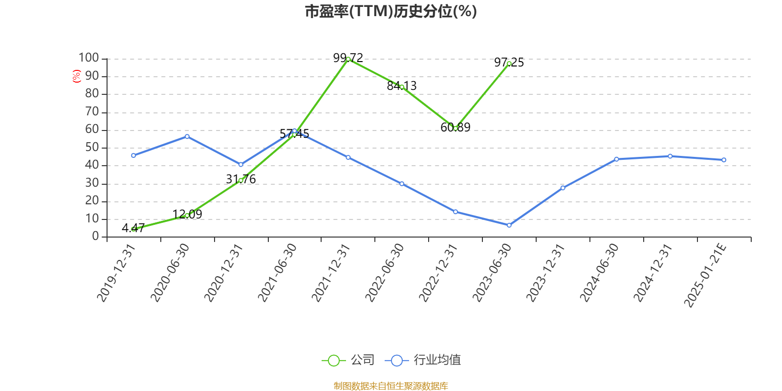 以本次披露业绩预告均值计算,公司近年市盈率(TTM)图如下所示: