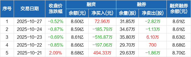 海翔药业:融资净买入72.96万元,融资余额8.6亿元(10-27)