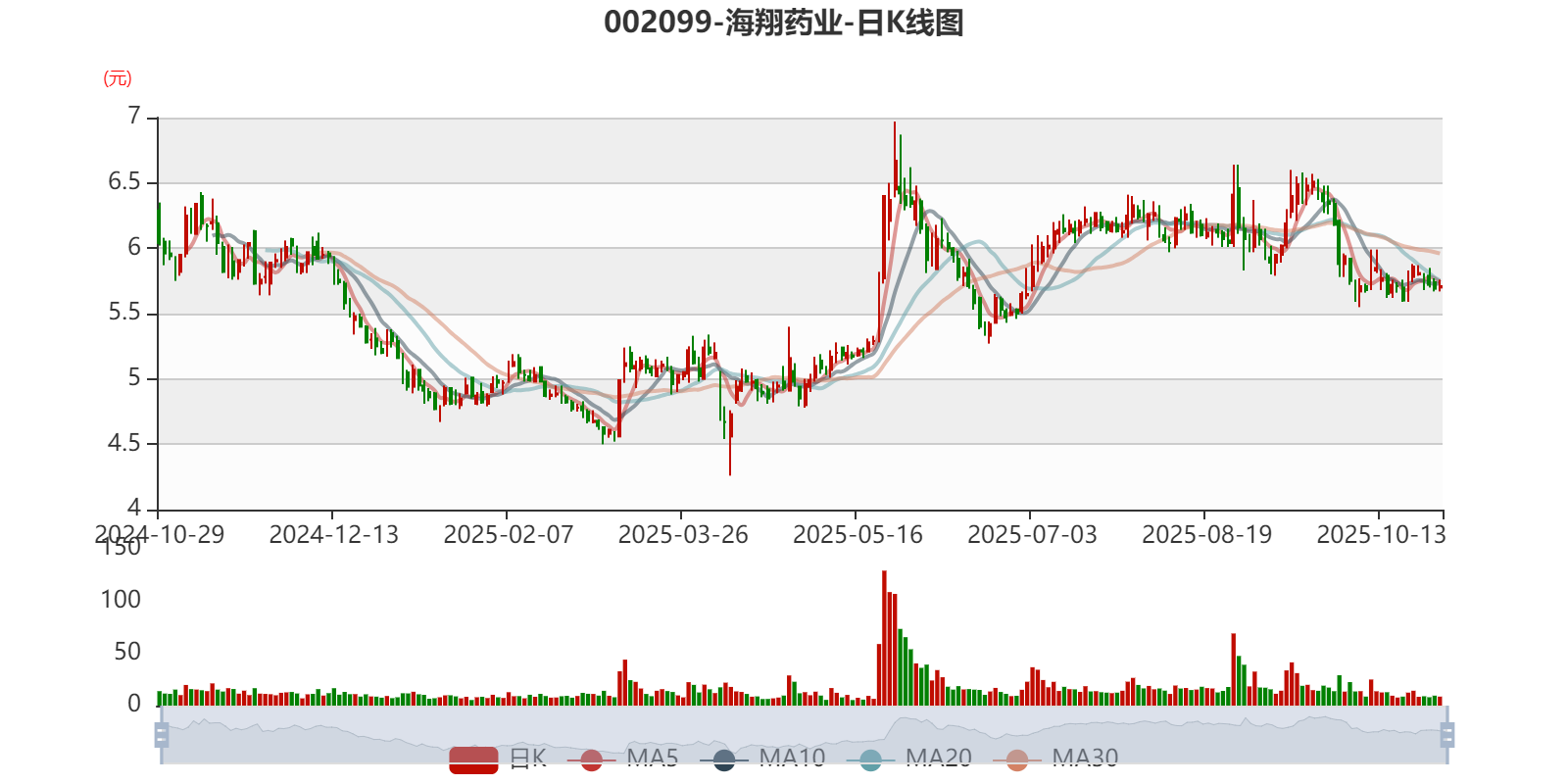 以10月28日收盘价计算,海翔药业目前市盈率(TTM)约为-27.59倍,市净率(LF)约1.81倍,市销率(TTM)约4.97倍。