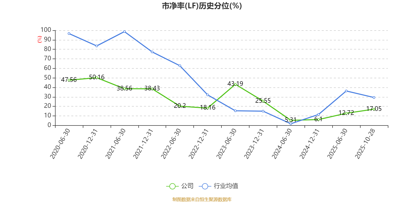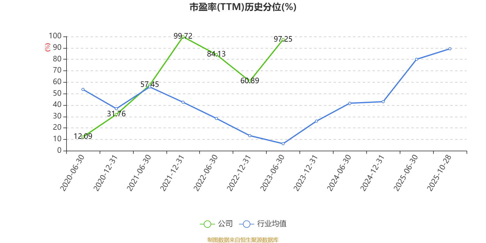 市盈率、市净率为负时,不显示当期分位数,会导致折线图中断。