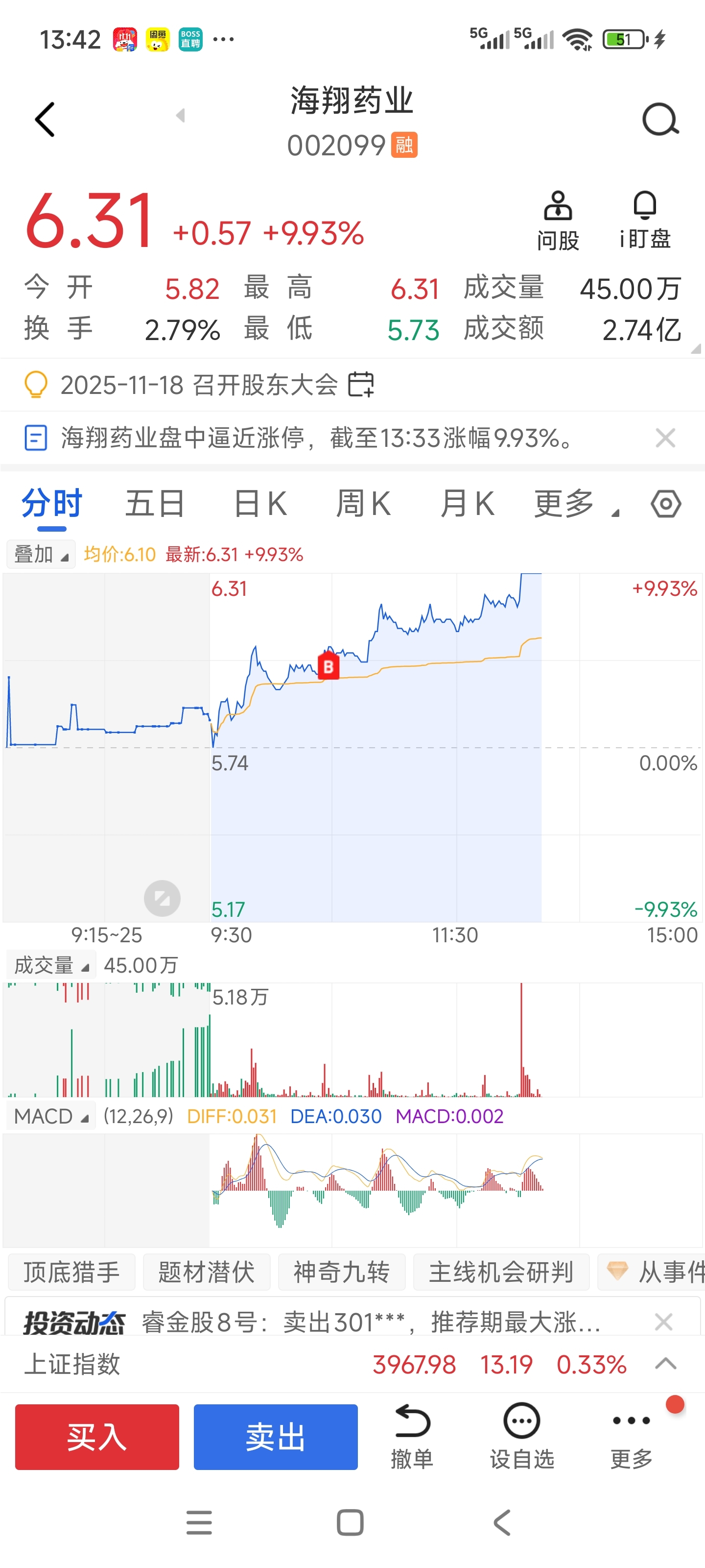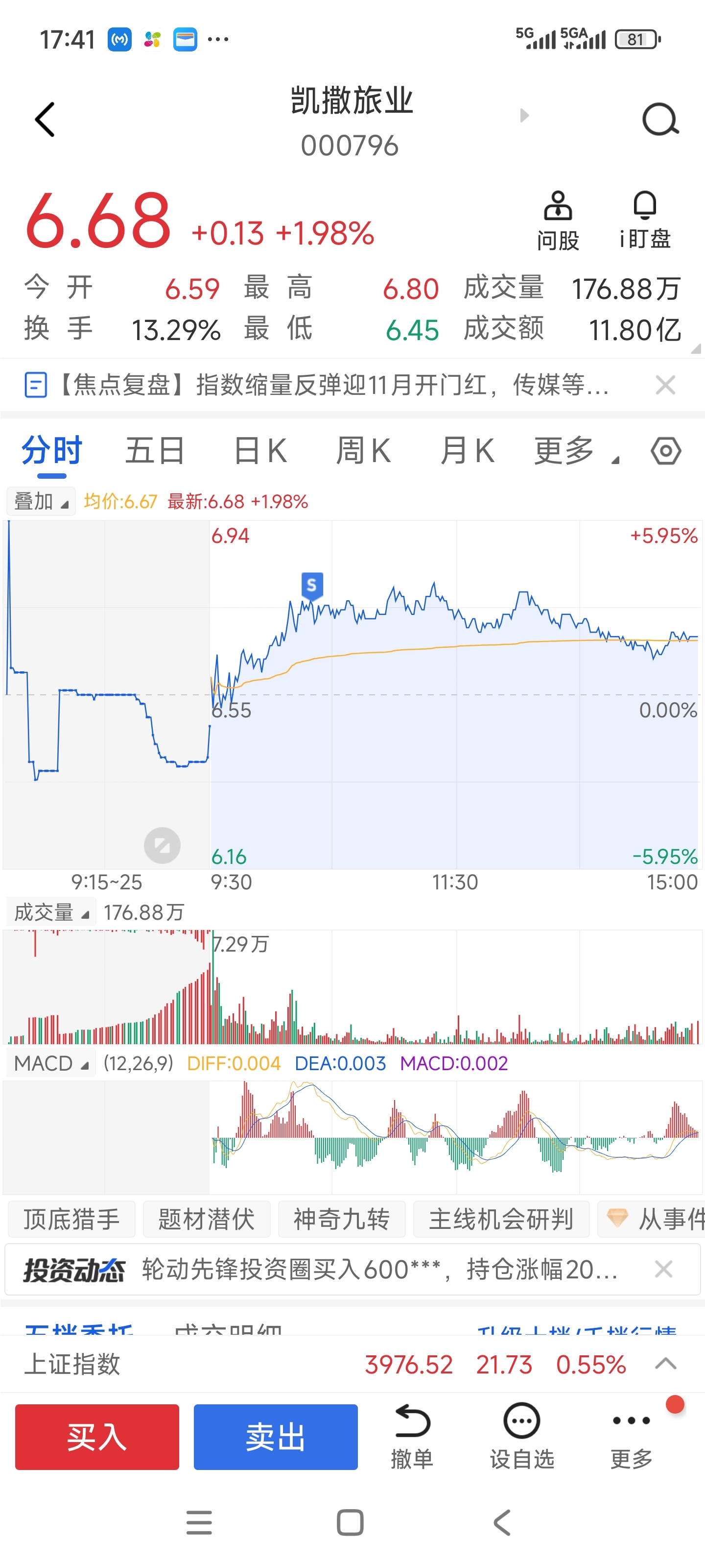 还行!周五搞了凯撒旅业,今天拉高走了,虽然还有预期,但是我还是走了,全仓去追海翔