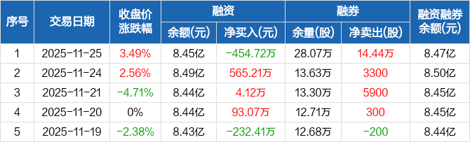 海翔药业:融资净偿还454.72万元,融资余额8.45亿元(11-25)