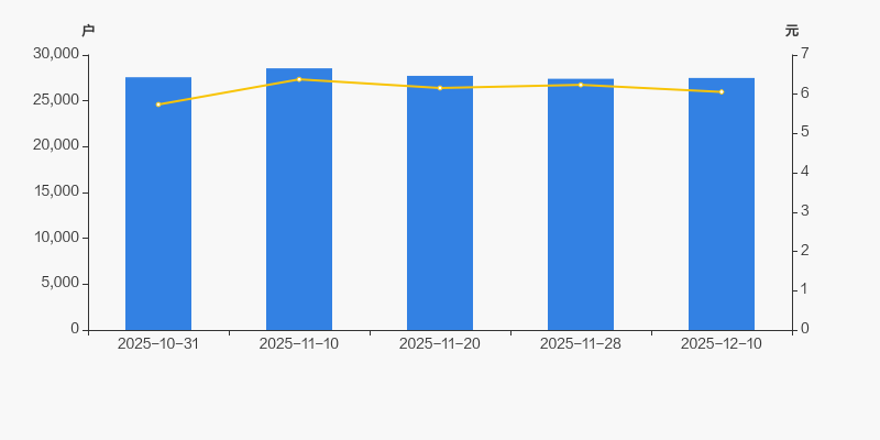 2025年10月31日至今,公司股东户数有所下降,区间跌幅为0.29%。2025年10月31日至2025年12月10日区间股价上涨5.57%。