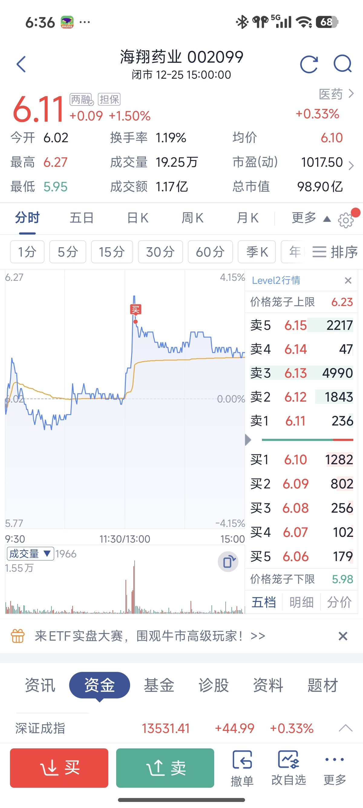 $海翔药业(SZ002099)$ 我错了 就不该买你#股市怎么看#