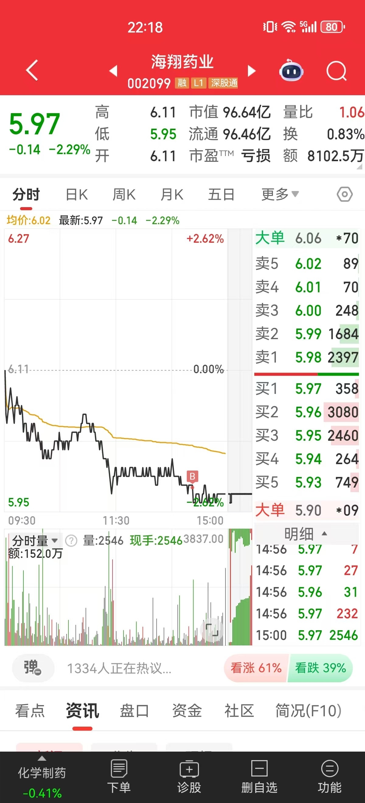 周五买入002099海翔药业,创新药+回购+原料药,周四试盘上突,周五回踩震荡,