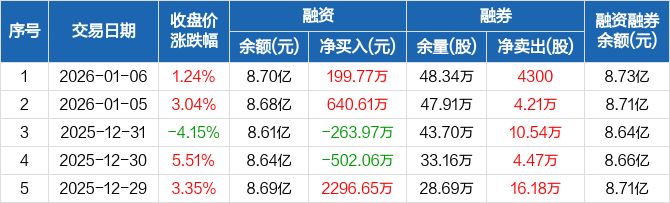 海翔药业:融资净买入199.77万元,融资余额8.7亿元(01-06)