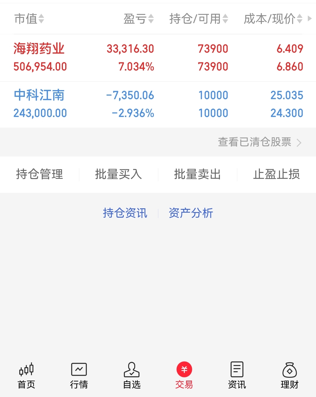 $海翔药业(SZ002099)$ $中科江南(SZ301153)$ 一红一绿,今天继续一股未动
