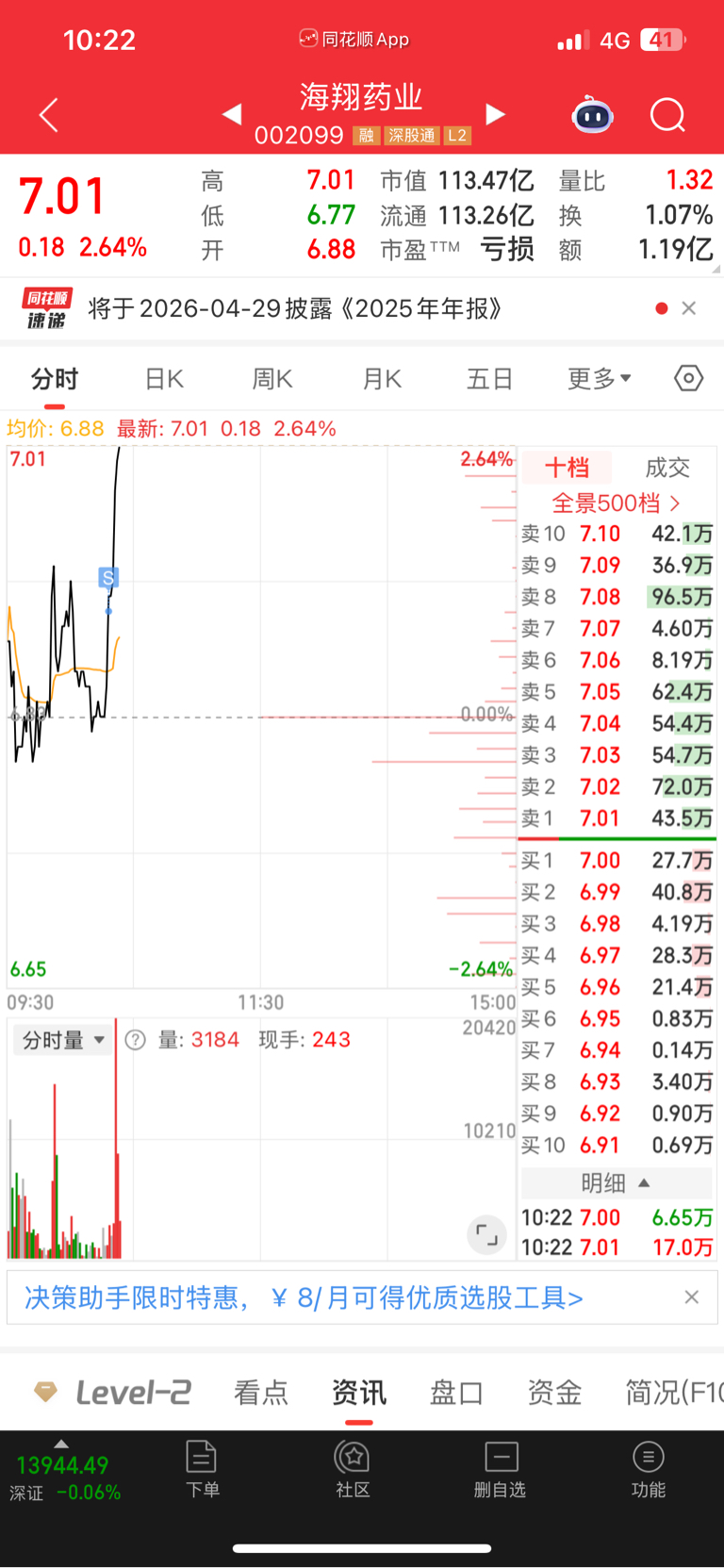 $海翔药业(SZ002099)$ 我也是服了,拿着不涨,熬不住了就起来了