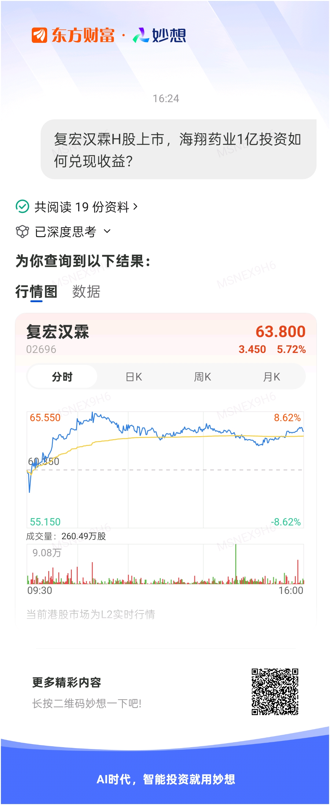 #@妙想,你怎么看?# 妙想一下:复宏汉霖H股上市,海翔药业1亿投资如何兑现收益?