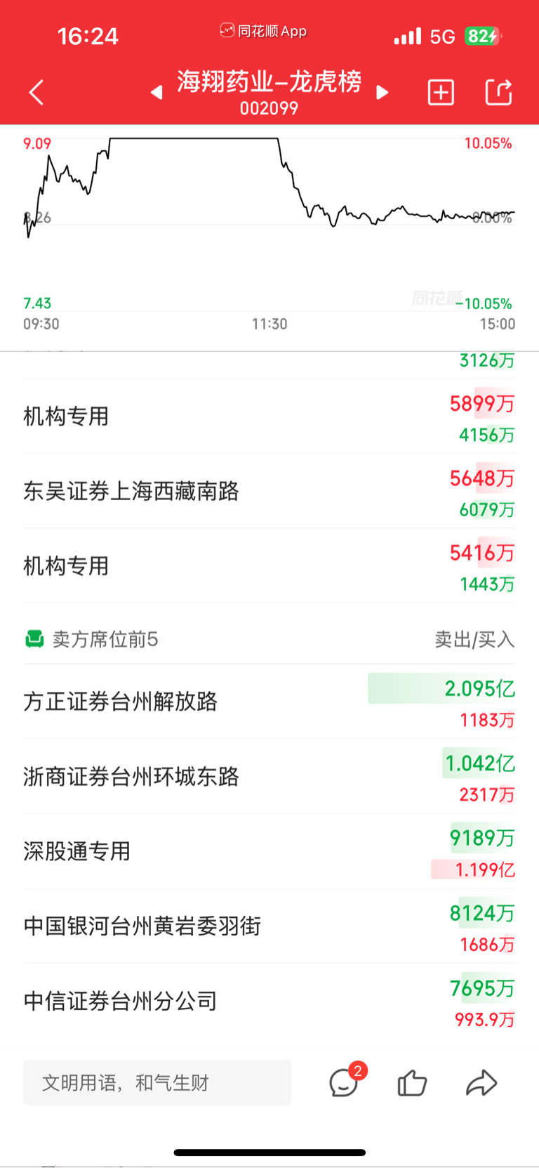 $海翔药业(SZ002099)$ 台州老庄出来了 4个庄家席位