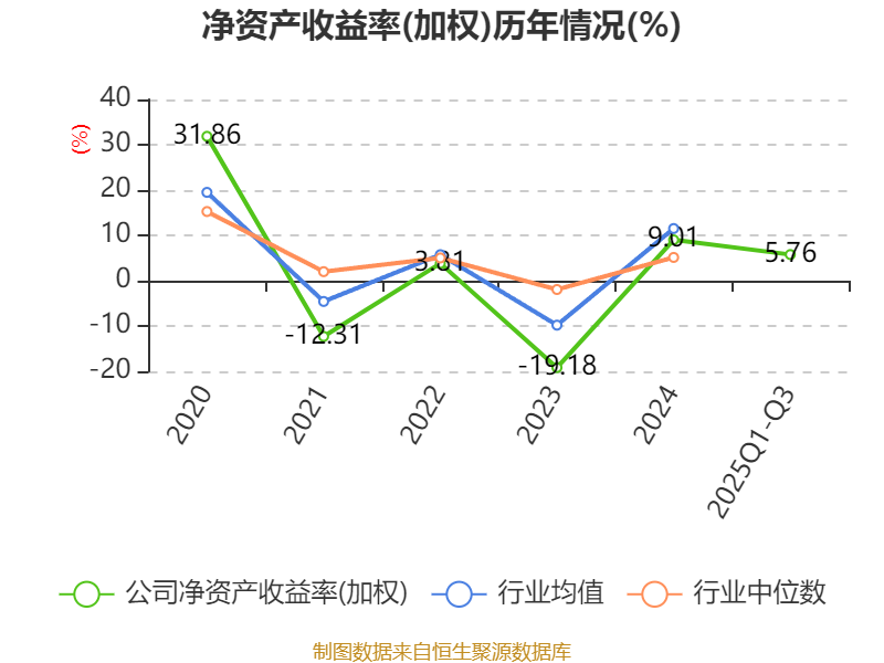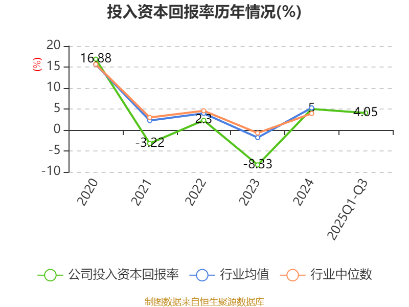 盈利能力方面, 2025年前三季度公司加权平均净资产收益率为5.76%,同比下降2.7个百分点。公司2025年前三季度投入资本回报率为4.05%,较上年同期下降0.58个百分点。