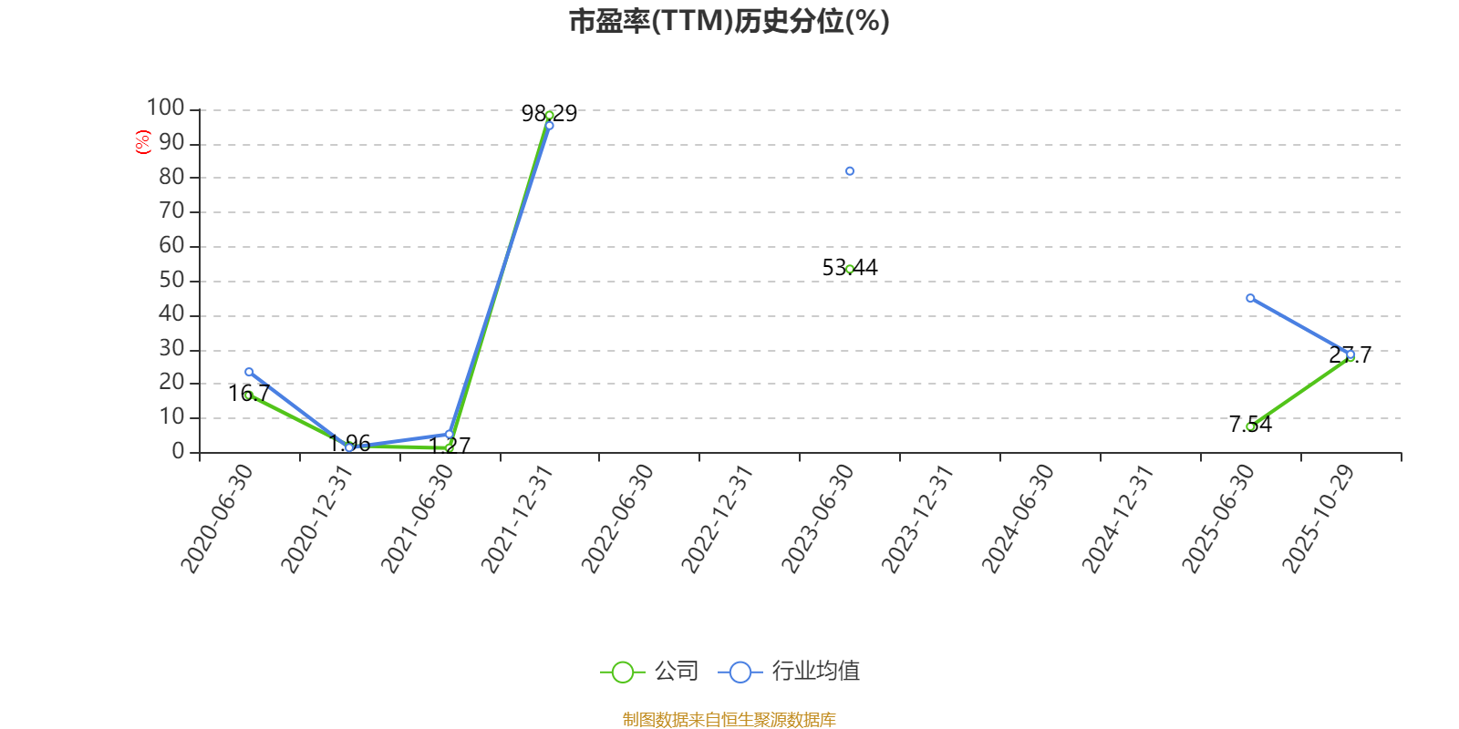 市盈率、市净率为负时,不显示当期分位数,会导致折线图中断。