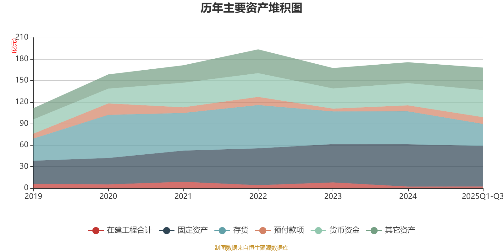 资产重大变化方面,截至2025年三季度末,公司存货较上年末减少33.22%,占公司总资产比重下降7.91个百分点;货币资金较上年末增加21.82%,占公司总资产比重上升4.81个百分点;预付款项较上年末增加12.88%,占公司总资产比重上升0.85个百分点;应收票据及应收账款较上年末增加21.87%,占公司总资产比重上升0.83个百分点。