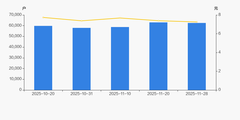 2025年10月20日至今,公司股东户数有所增长,区间涨幅为4.57%。2025年10月20日至2025年11月28日区间股价下降6.20%。