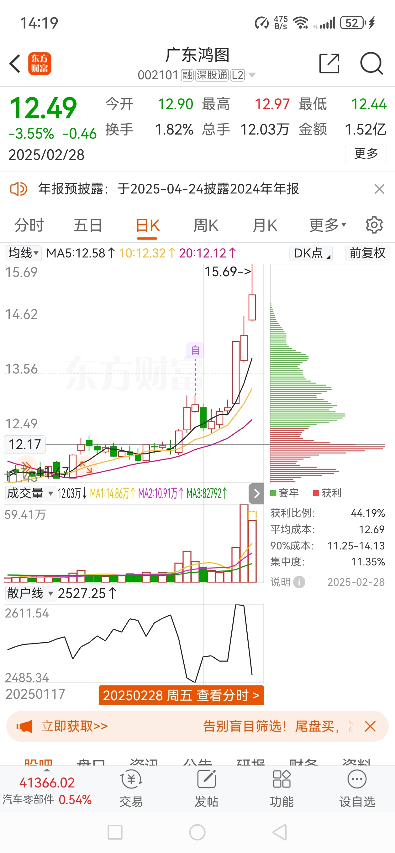 $广东鸿图(SZ002101)$ 但凡上周五走平我就杀进去了,还得继续悟道