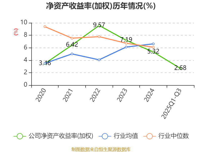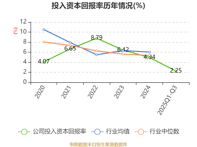 盈利能力方面, 2025年前三季度公司加权平均净资产收益率为2.68%,同比下降0.78个百分点。公司2025年前三季度投入资本回报率为2.25%,较上年同期下降0.66个百分点。