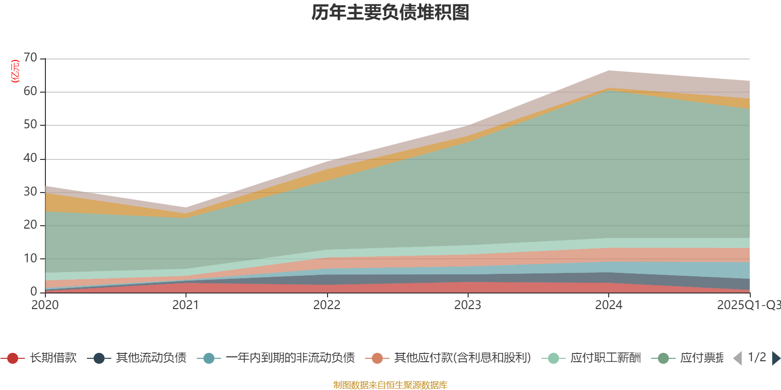 负债重大变化方面,截至2025年三季度末,公司应付票据及应付账款较上年末减少12.7%,占公司总资产比重下降3.26个百分点;短期借款较上年末增加317.75%,占公司总资产比重上升1.69个百分点;长期借款较上年末减少72.93%,占公司总资产比重下降1.42个百分点;一年内到期的非流动负债较上年末增加55.83%,占公司总资产比重上升1.29个百分点。