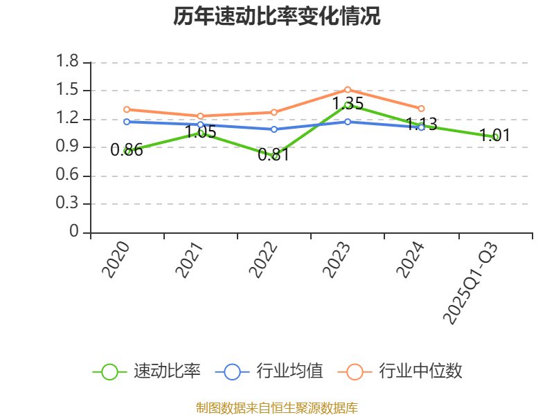2025年前三季度,公司流动比率为1.26,速动比率为1.01。