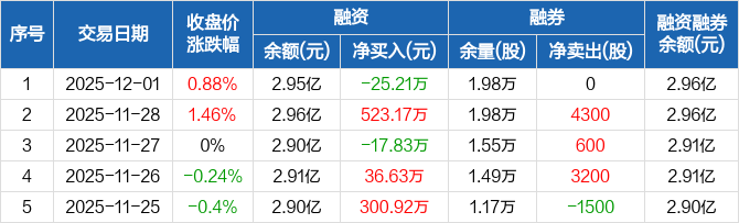 广东鸿图:融资净偿还25.21万元,融资余额2.95亿元(12-01)