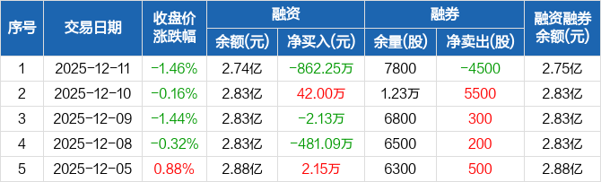 广东鸿图:融资净偿还862.25万元,融资余额2.74亿元(12-11)