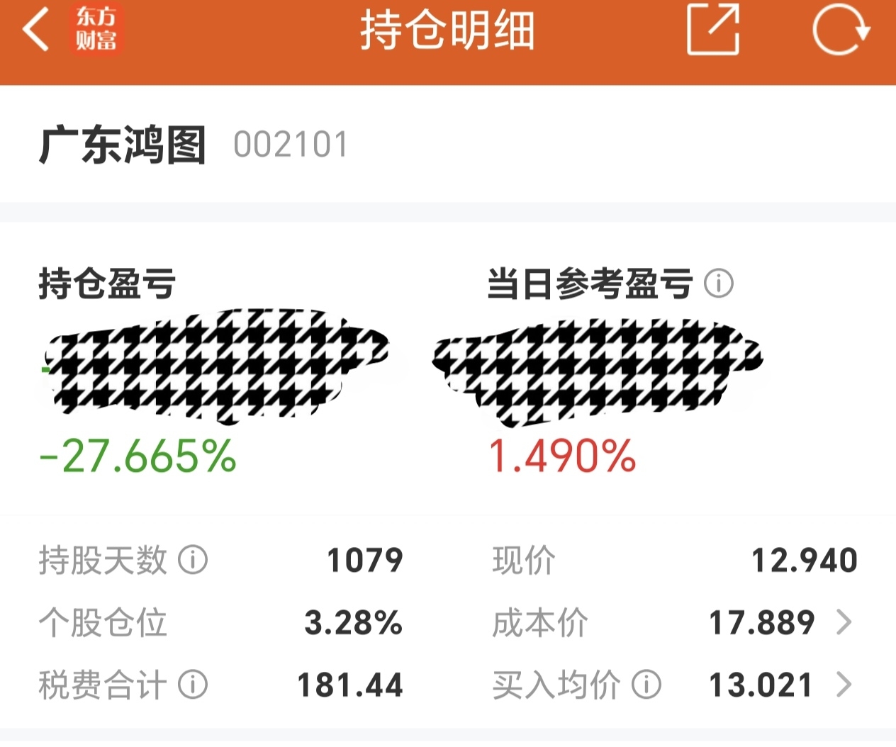 $广东鸿图(SZ002101)$ 因仓位不是很重,这个票就这么放着了,一看时间,都1千多天了,在座的各位有没有比我拿的时间好长的呀