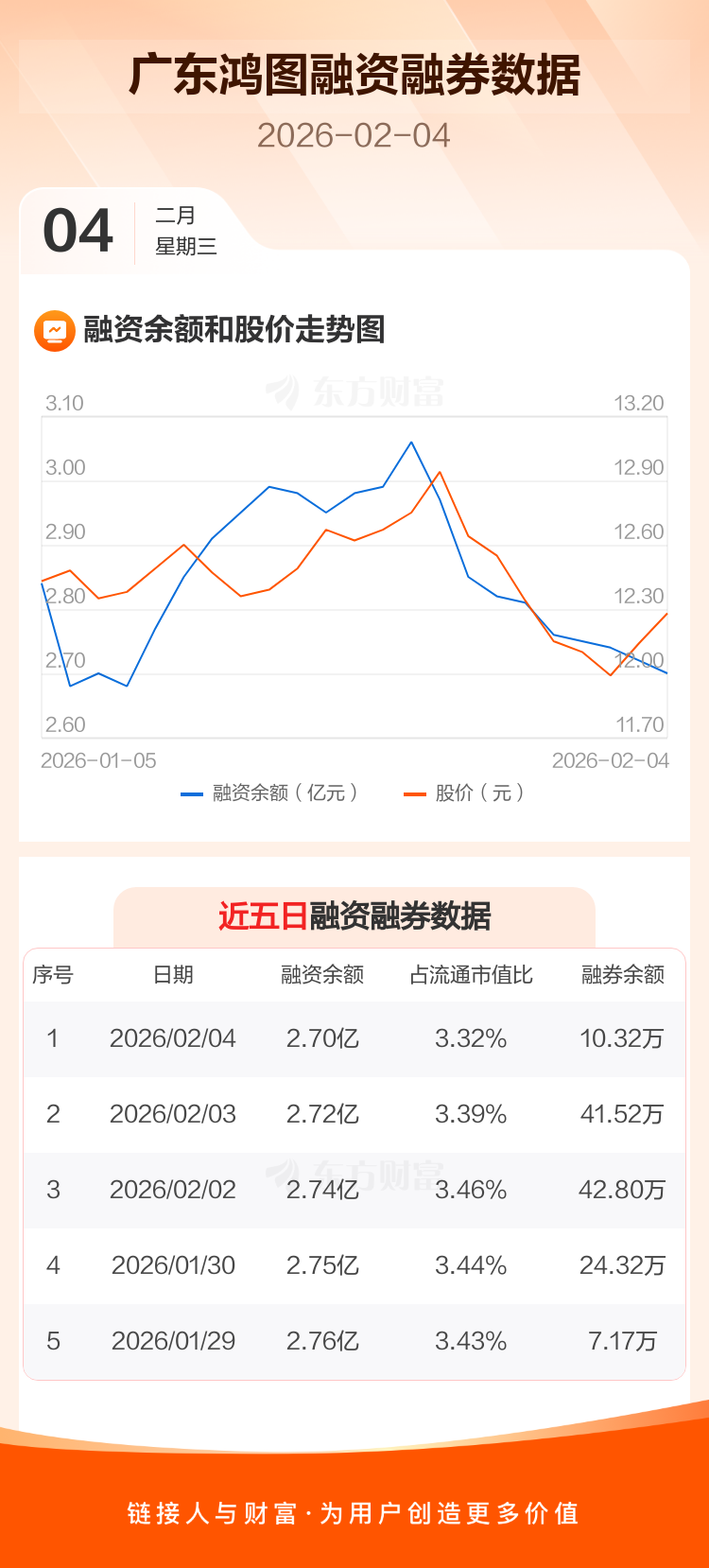 交易所最新数据显示,广东鸿图于2026年2月4日获融资买入819.99万元,融资偿还1006.63万元,当日融资净偿还186.64万元。目前,该股融资余额2.70亿,占流通市值比例为3.32%。