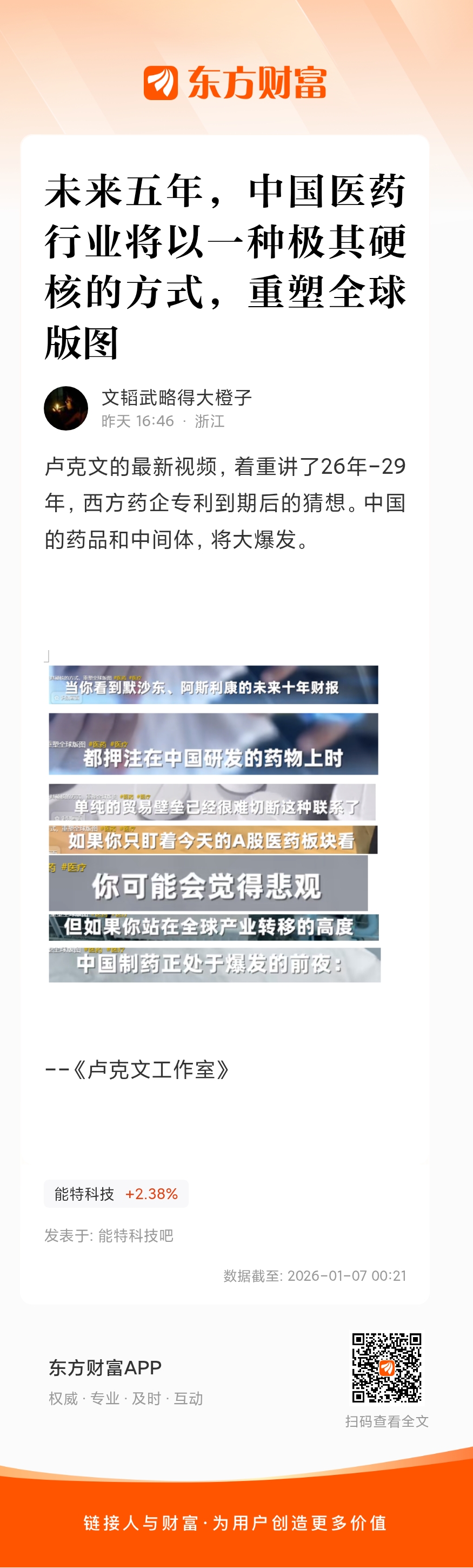 卢克文的最新视频,着重讲了26年-29年,西方药企专利到期后的猜想。中国的药品和中间体,将大爆发。