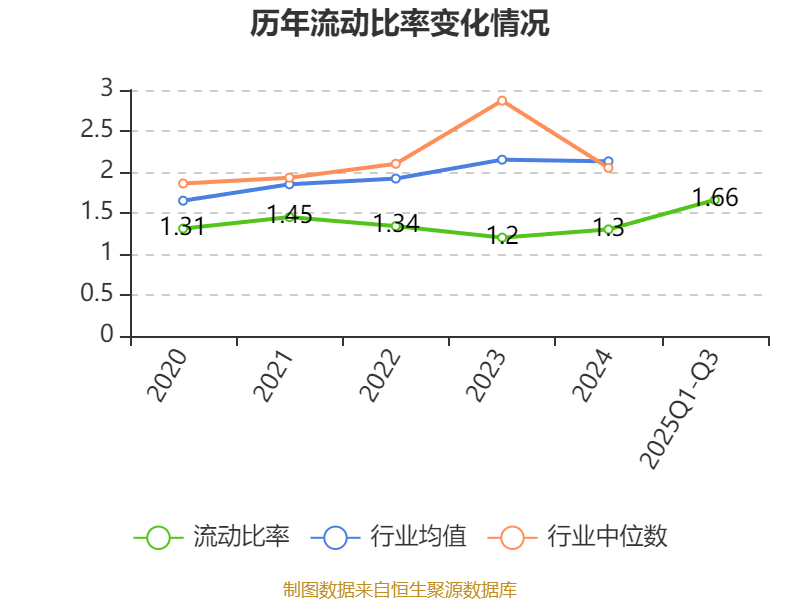 2025年前三季度,公司流动比率为1.66,速动比率为1.5。