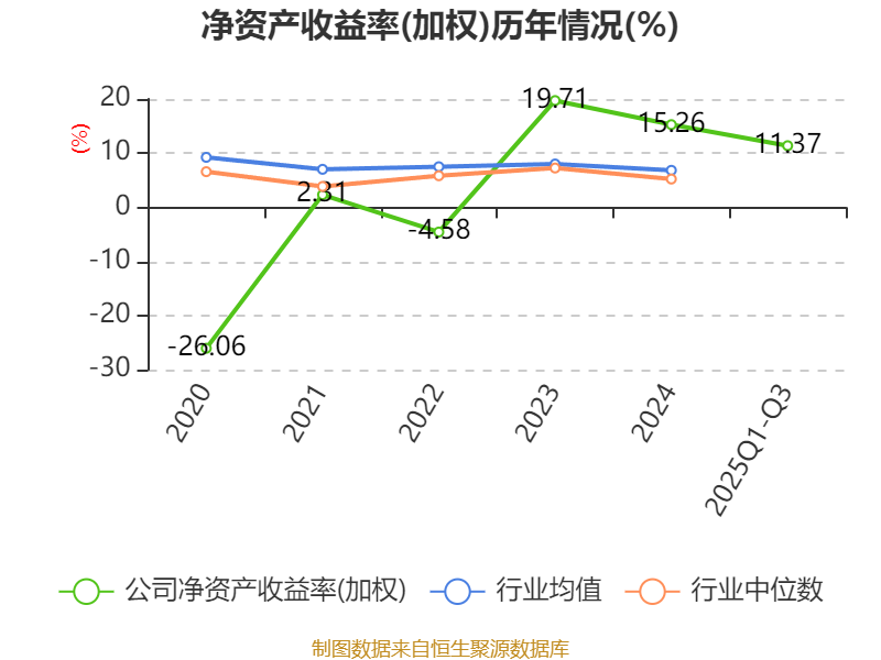 盈利能力方面, 2025年前三季度公司加权平均净资产收益率为11.37%,同比上升0.71个百分点。公司2025年前三季度投入资本回报率为7.97%,较上年同期上升0.07个百分点。