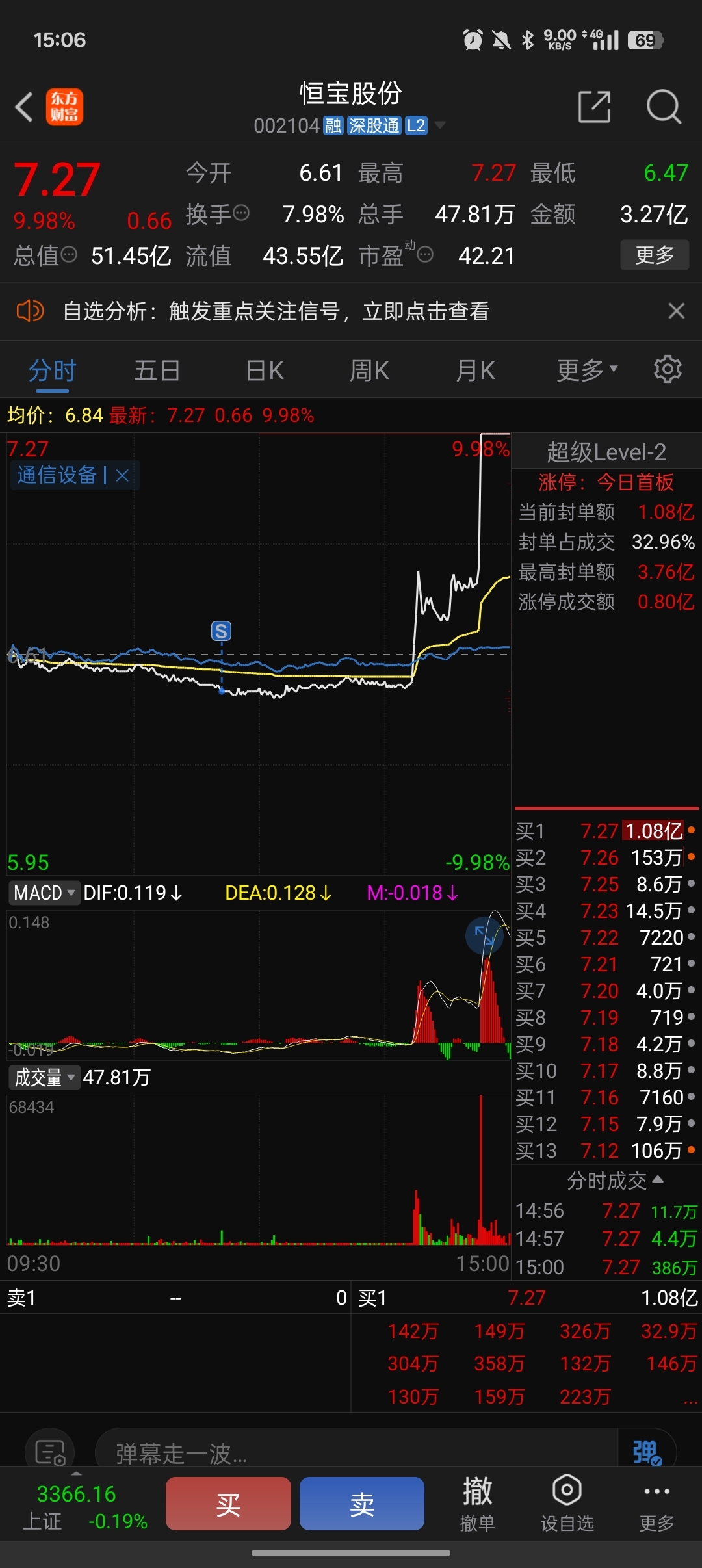 $恒宝股份(SZ002104)$ 卖在了最低价
