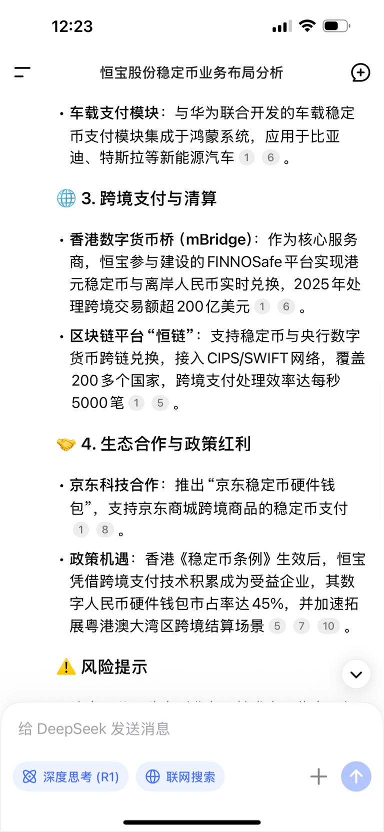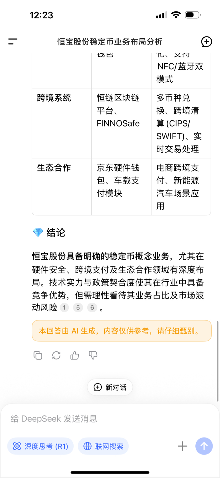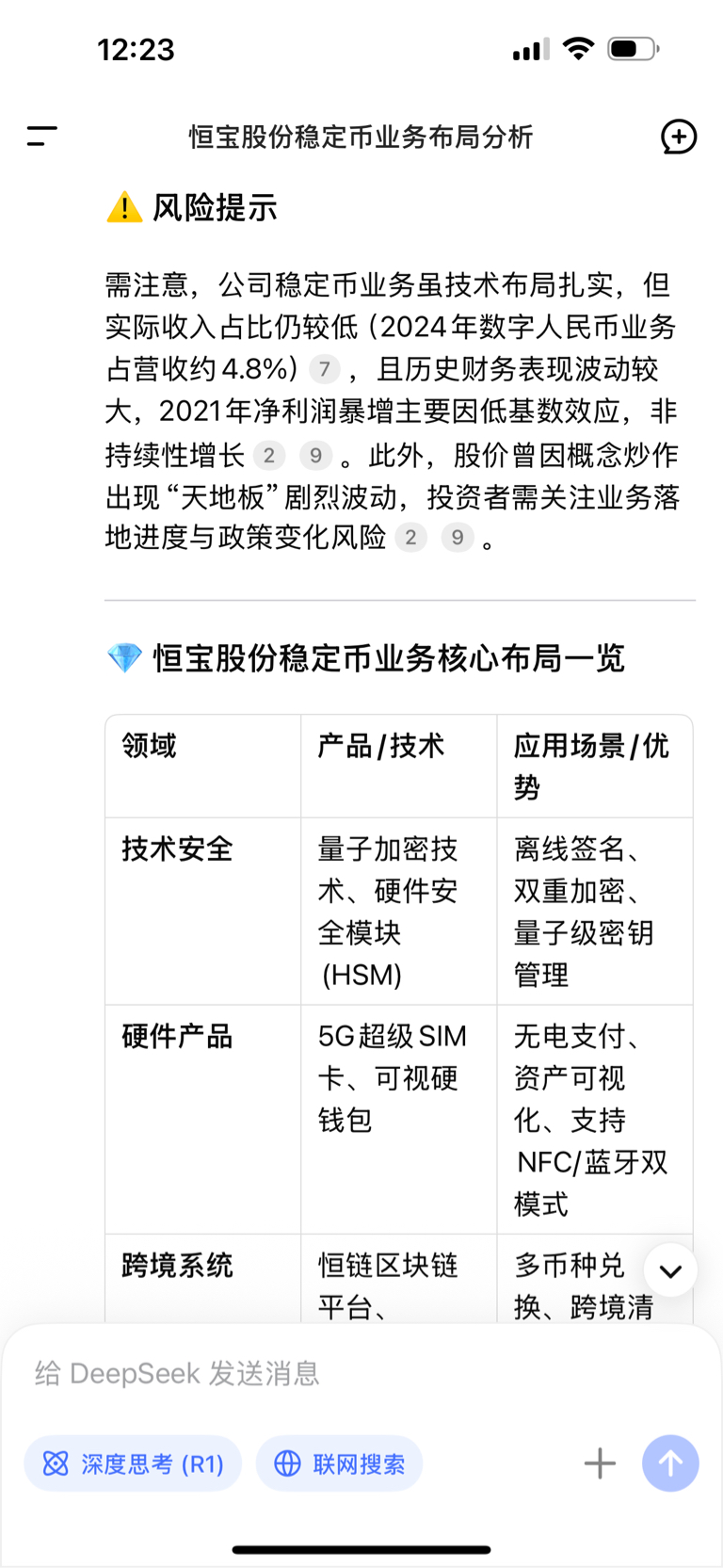 $恒宝股份(SZ002104)$ **恒宝股份具备明确的稳定币概念业务**,尤其在硬件安全、跨境支付及生态合作领域有深度布局。技术实力与政策契合度使其在行业中具备竞争优势,但需理性看待其业务占比及市场波动风险。