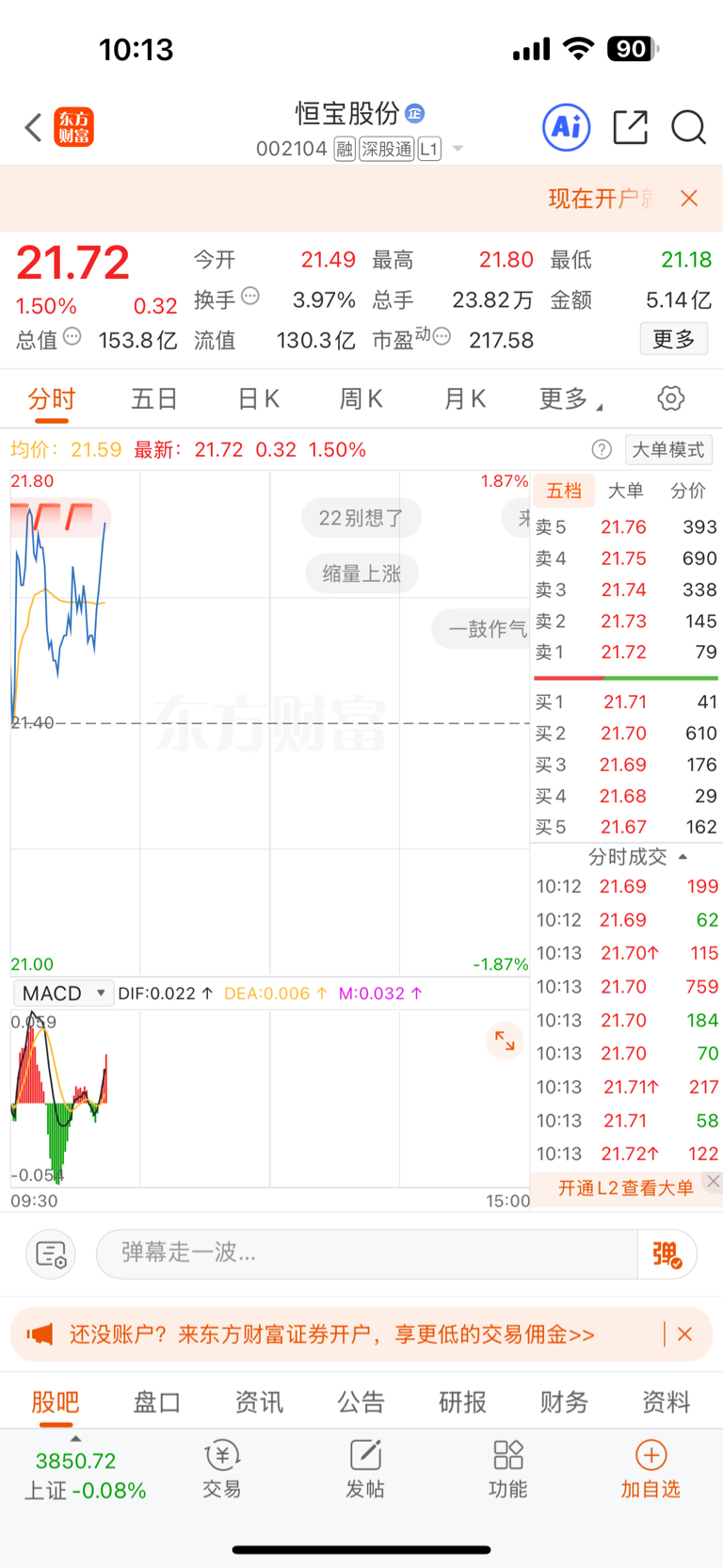 温馨提示: 1.根据《证券法》规定,禁止编造、传播虚假信息或者误导性信息,扰乱证券市场;2.用户在本社区发表的所有资料、言论等仅代表个人观点,与本网站立场无关,不对您构成任何投资建议。用户应基于自己的独立判断,自行决定证券投资并承担相应风险。《东方财富社区管理规定》