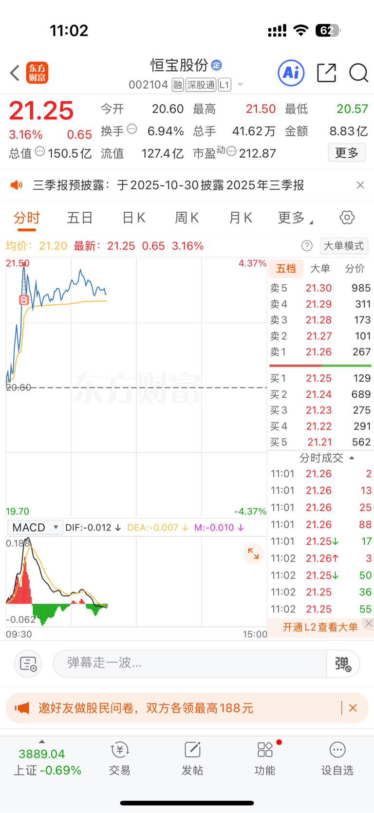 $恒宝股份(SZ002104)$ 21.5 对不起大家下周我就撤,耽误大家发财了 抱歉