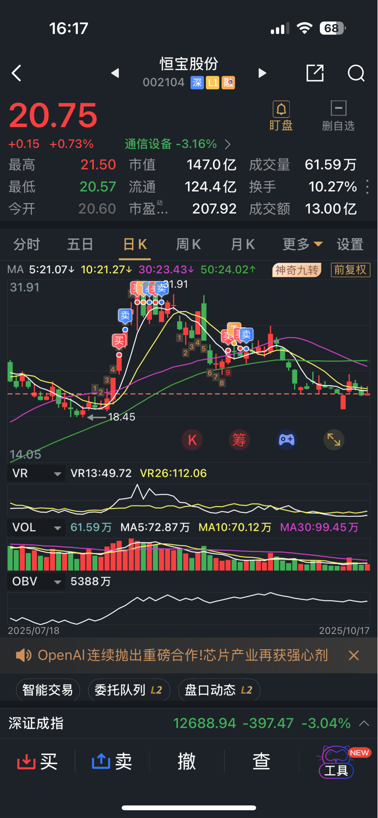 $恒宝股份(SZ002104)$ 在你身上没赚到多少,明天回来再薅点羊毛