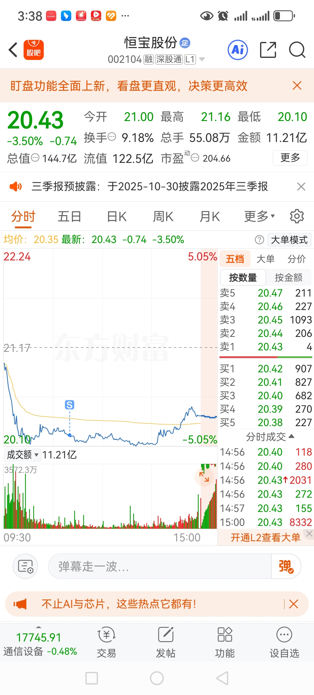 $恒宝股份(SZ002104)$ 兄弟们对不起我坚持不住了