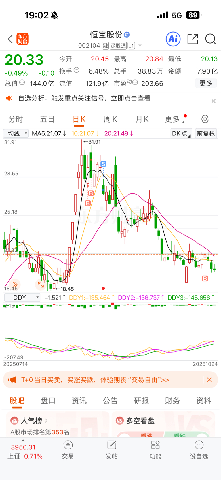 $恒宝股份(SZ002104)$ 是不是我买崩了它,太不好意思了