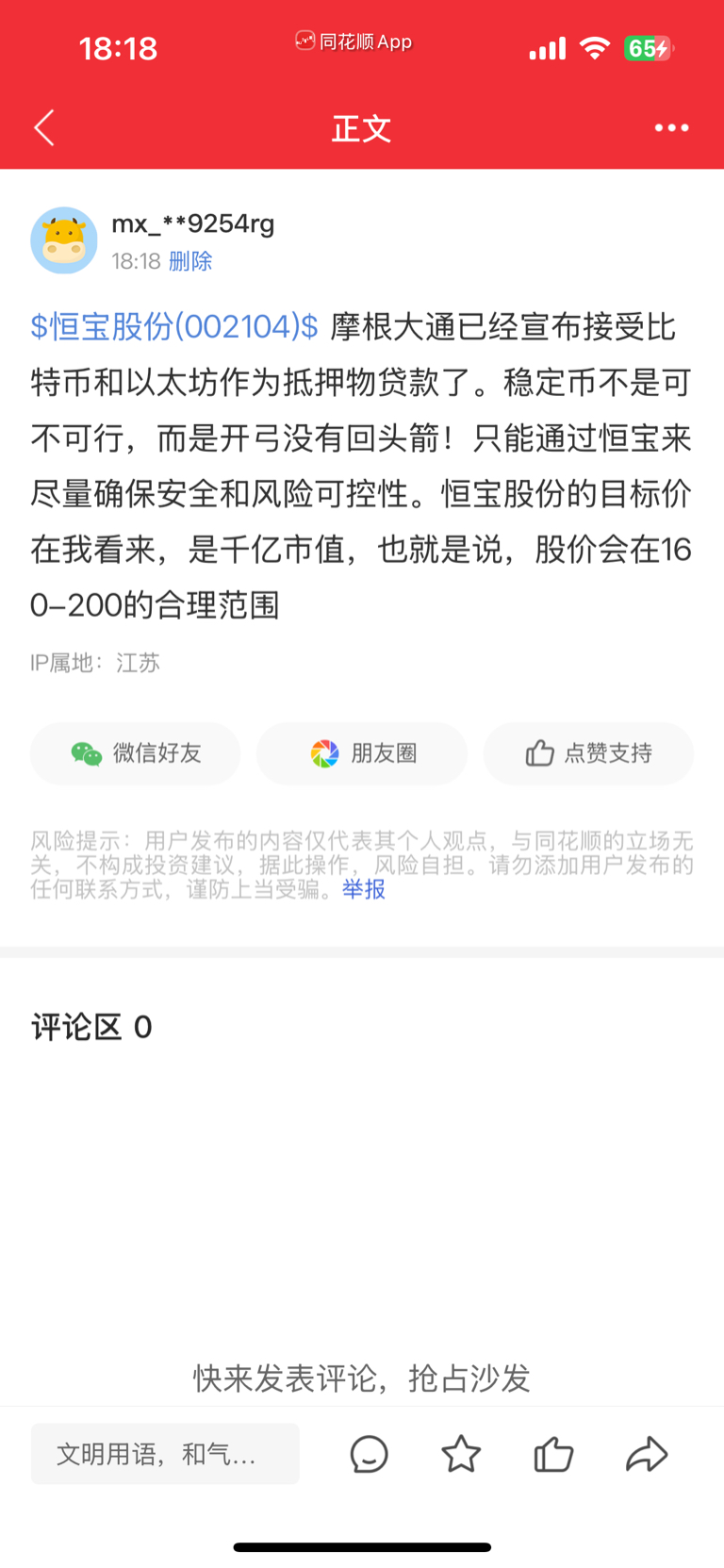 温馨提示: 1.根据《证券法》规定,禁止编造、传播虚假信息或者误导性信息,扰乱证券市场;2.用户在本社区发表的所有资料、言论等仅代表个人观点,与本网站立场无关,不对您构成任何投资建议。用户应基于自己的独立判断,自行决定证券投资并承担相应风险。《东方财富社区管理规定》